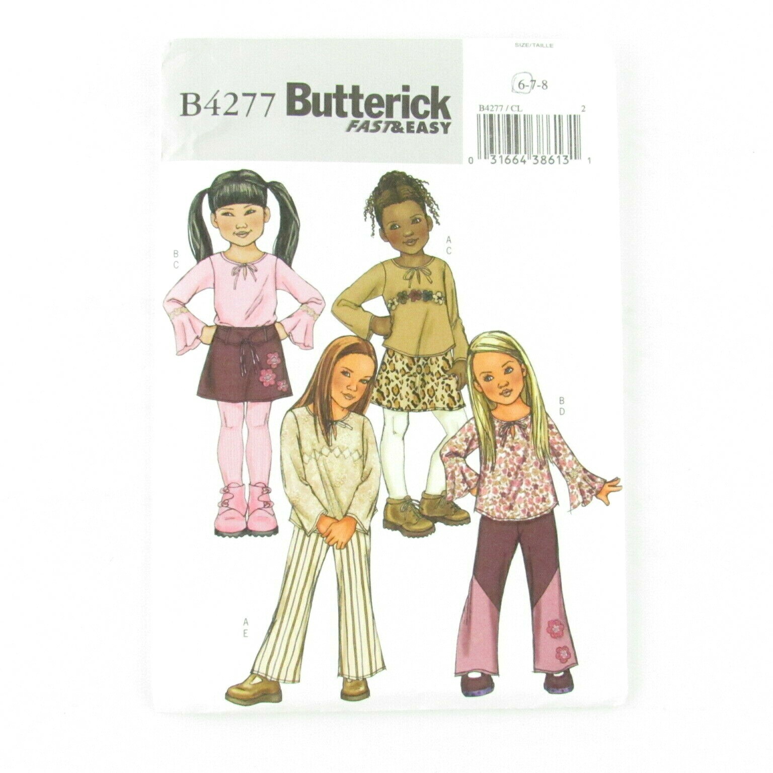Butterick Top Skirt Pants Belt Sewing Pattern B4277 Size 6 8 Girls Child Cut 31664386131 Ebay